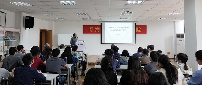 2018年4月2-3日,国产偷拍 的海洋观测与数据同化研讨会在507会议室成功举办。美国伍兹霍尔海洋研究所黄瑞新教授、金向泽副教授,中国海洋大学刘秦玉教授,哈尔滨工程大学何忠杰教授,中国科学院大气物理研究所林一骅研究员,国家海洋局国家海洋信息中心吴新荣研究员、张学峰研究员、付红丽副研究员及广东海洋大学李敏博士等国内外海洋观测与数据同化领域的专家和学者,以及国产偷拍 60余名师生们参加了本次会议。会议由国产偷拍 院长齐义泉主持。