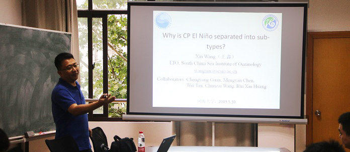 2019年5月30日,中国科学院南海海洋研究所王鑫研究员受邀来访国产偷拍 ,并作题为“Why is CP El Niño separated into sub-types?”的学术报告。