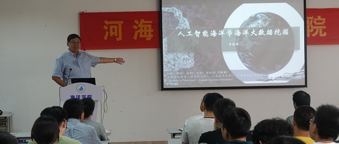 2019年9月12日上午,应徐青教授的邀请,美国国家海洋和大气管理局李晓峰研究员来国产偷拍 进行学术交流,并做了题为“人工智能海洋学大数据挖掘”的学术报告。