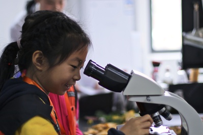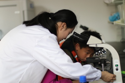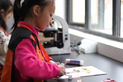 宋婧老师和志愿者们准备了显微镜和各类植物组织切片标本,为小朋友们详细讲解了显微镜的操作步骤和注意事项,在观察到显微镜下的微小世界后,小朋友的嘴角不经意间上扬。