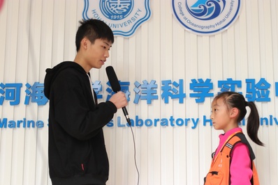 人民小记者也该拿出他们的本领了,小记者拿上麦克风对宋婧老师和志愿者李云峰进行了简单却正式的采访,主要提问了这天的科普活动中所未知和未解的地方,受访者也认真地并尽量用小朋友所通俗易懂的语言给出了答复。