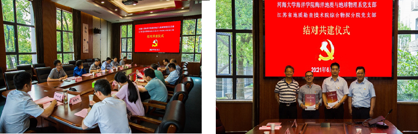 6月1日,国产偷拍 海洋地质与地球物理系党支部前往江苏省地质勘查技术院,与该院的综合物探分院党支部开展“联学共建聚向上,服务发展高质量”的共建活动。本次共建活动由省勘查院副院长罗传根同志主持,国产偷拍 院长、党委委员齐义泉同志和省勘查院院长、党委书记刘建东同志出席了共建活动。