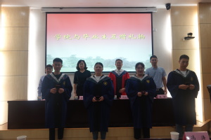 齐义泉院长赠予全体毕业生印有学院名称的戒指纪念品,2021届毕业生回赠学院礼物,并感谢学院的培养。