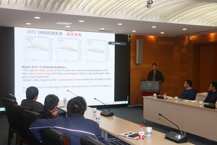 下午的学术研讨会由国产偷拍 的王强教授主持。中国气象科学研究院的任宏利研究员应邀作《ENSO多样性研究进展》报告,介绍了ENSO的空间和时间多样性,并利用新的经验方法,揭示了新型ENSO事件在近40年来频发的原因;中国气象局地球系统数值预报中心的苏京志研究员应邀作《副热带太平洋海温对ENSO形成演变的调制作用》报告,从业务预报角度,介绍了两种对ENSO发生、发展具有重要影响的副热带太平洋经向模态,以及两种模态在ENSO业务预报中的重要作用。两位专家精彩的报告令在场师生受益匪浅。本次会议在热烈的研讨氛围中落下帷幕。