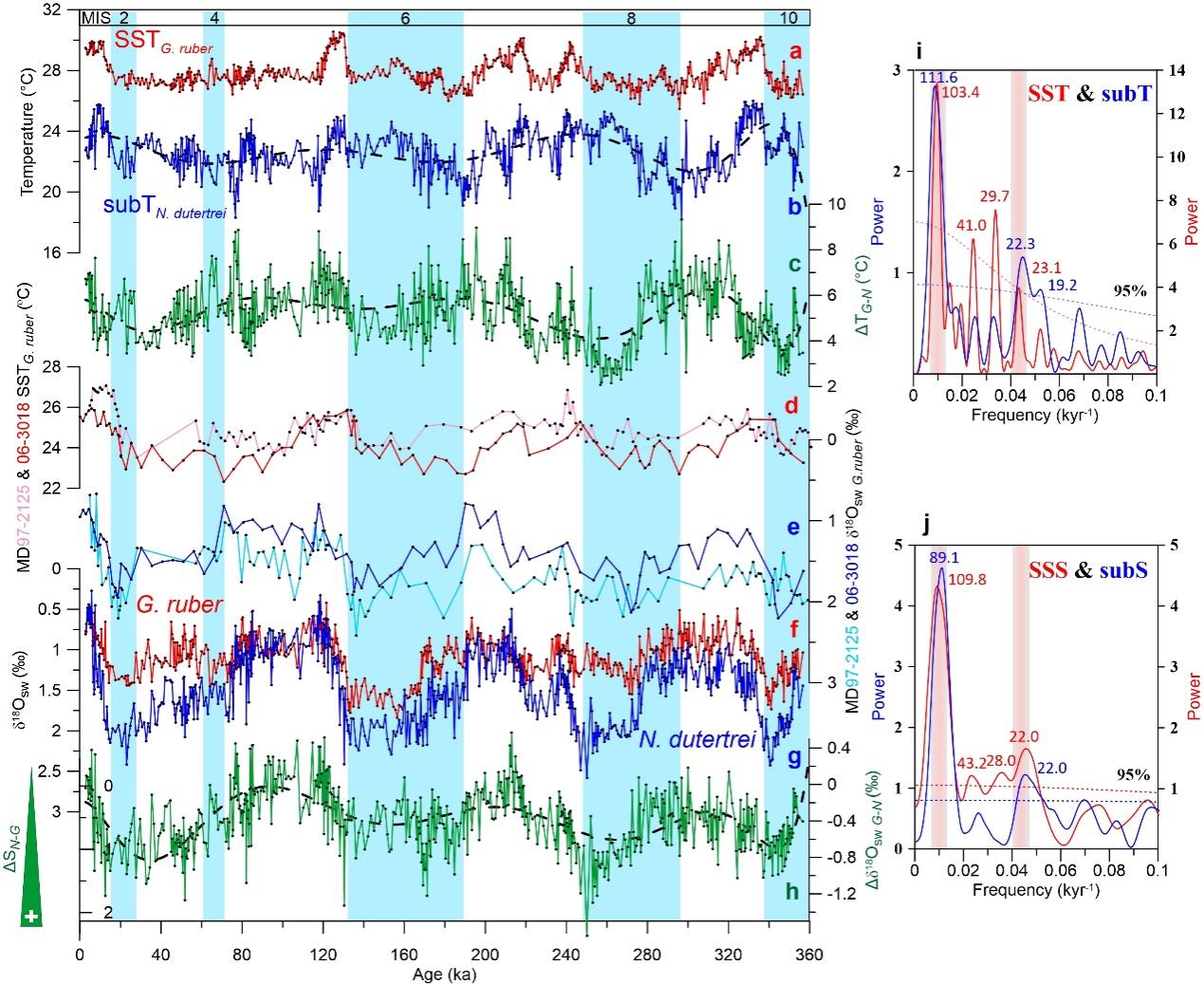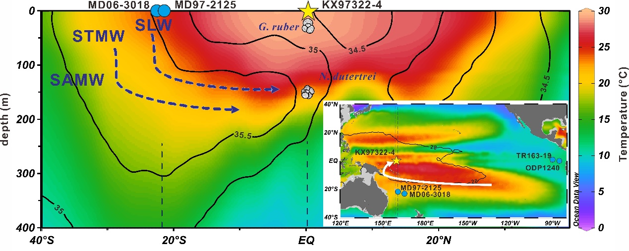 2021年11月22日,国产偷拍 齐义泉教授课题组博士后张帅与合作者在Nature出版集团的刊物《Communications Earth & Environment》上发表论文,通过测试热带西太平洋暖池核心区海底沉积物中多种有孔虫壳体的地球化学(稳定氧同位素和镁钙比值)变化,在地质时间尺度上,重建了最近三十六万年西太平洋海区的表层和次表层的水体温度与盐度的演化历史,并探讨了太平洋热带与亚热带海区浅层温盐环流在地球轨道岁差频段类ENSO过程中的关键作用。