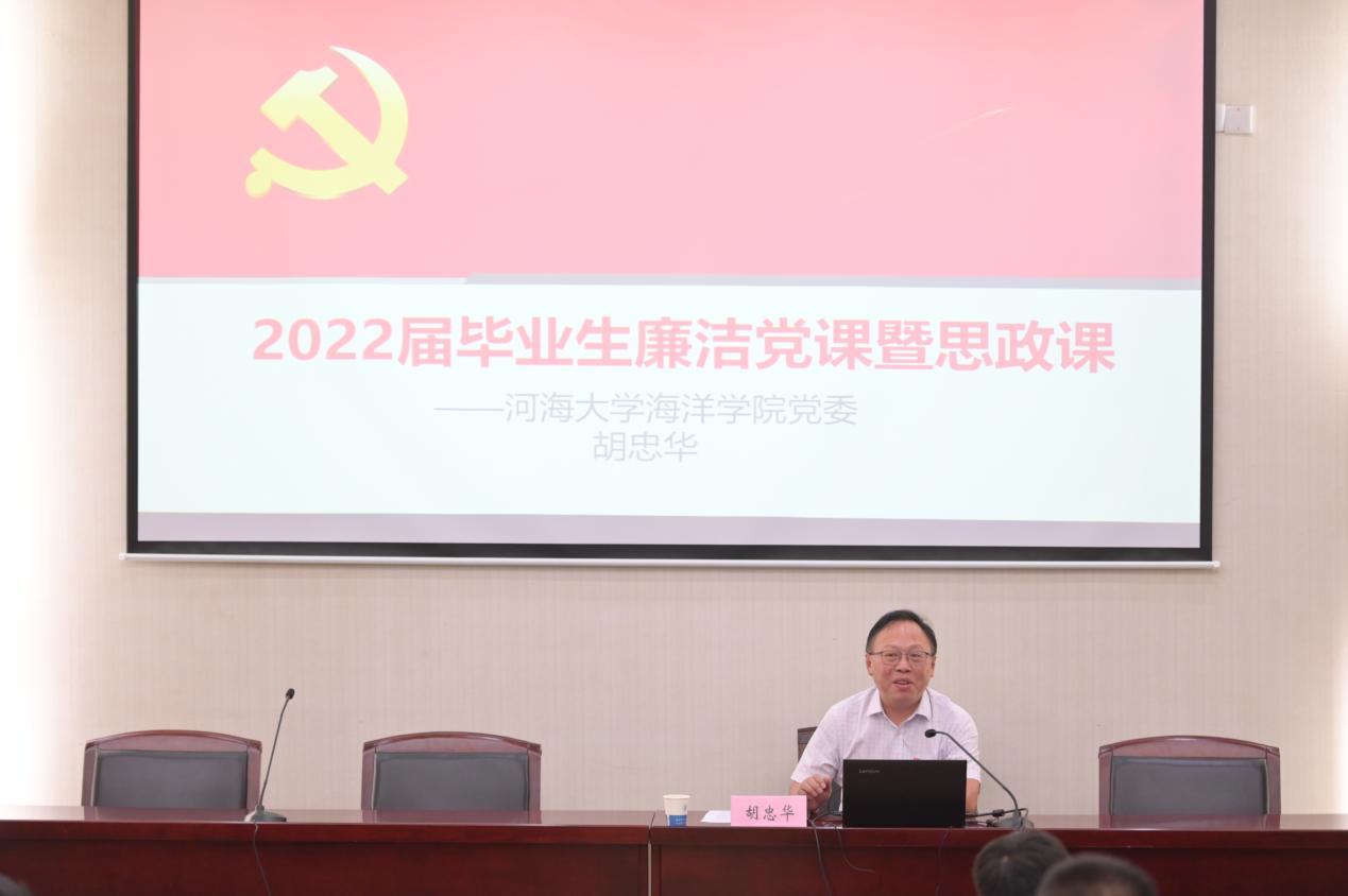 为进一步坚定毕业生理想信念,加强廉洁从业教育,涵养清廉之风,6月10日上午,国产偷拍 2022届毕业生“廉洁党课暨思政课”活动在闻天馆113顺利开展。活动由国产偷拍 党委书记胡忠华主讲,党委副书记吴昊主持,党委组织员阮雪琴、本科生毕业班辅导员赖颖、研究生辅导员刘彩英及2022届全体毕业生参加。