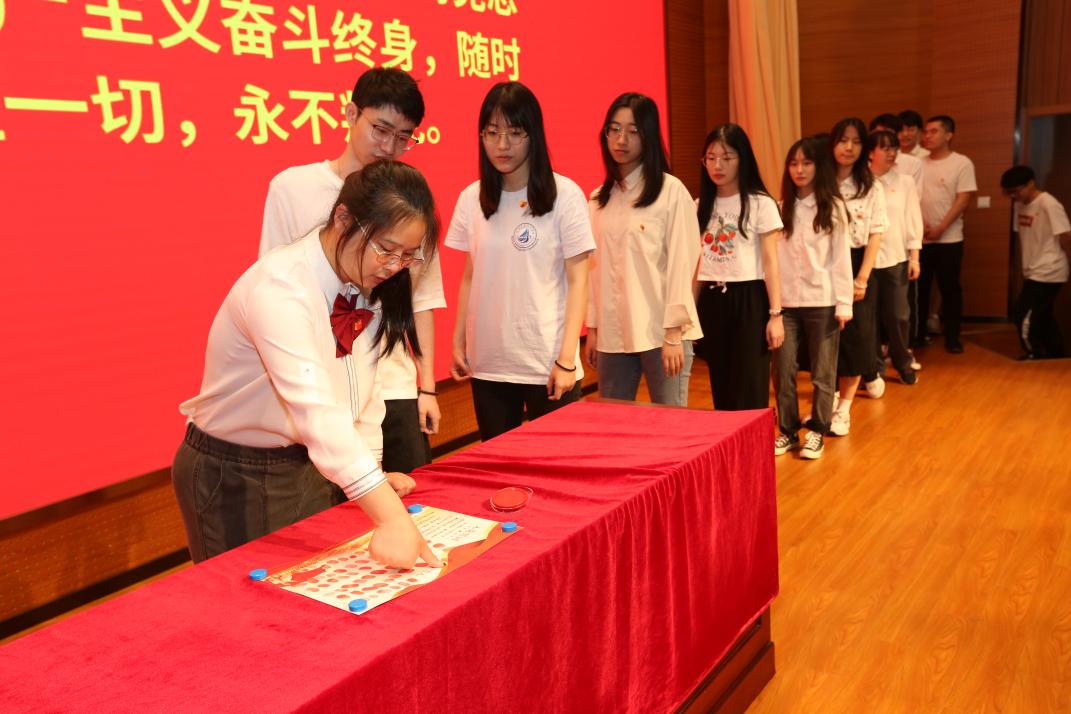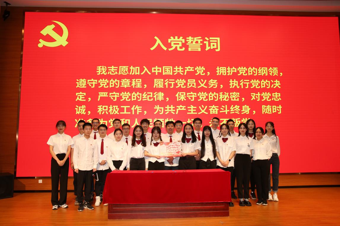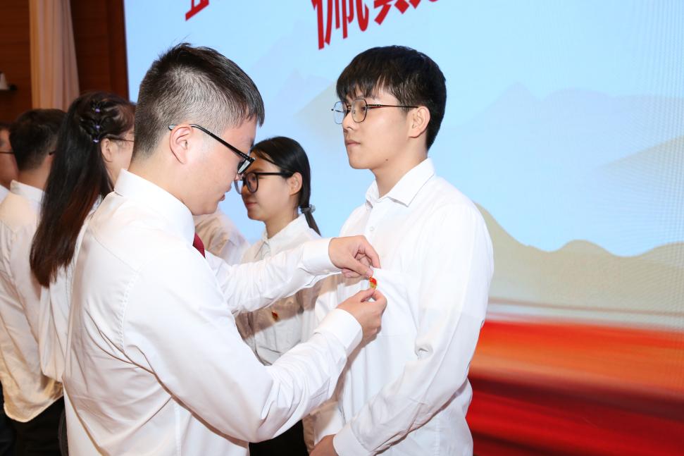 佩戴一枚党徽,赓续光荣使命。为鼓励新党员赓续优秀党员的光荣传统,会上举行“老党员为新党员佩戴党徽”仪式,2022届毕业生党员隆重地为新党员佩戴党徽,以传递党员的责任意识和担当精神,鞭策新党员坚定信仰、坚守初心,不断加强学习,在习近平新时代中国特色社会主义思想指引下奋力前行。
