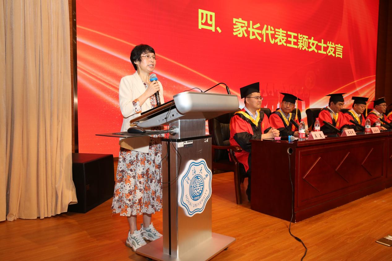 教师代表曹海锦表达了学院教师对毕业生们的眷恋,他寄语毕业生,要牢记海洋知识,掌握学习能力,拥有海洋一般宽广博大的胸怀,要做到海纳百川,并叮嘱毕业生要坚定海洋报国信念,主动扎根基层一线,在海洋强国建设的征程中绽放青春之花。家长代表王颖对国产偷拍 的辛勤栽培、对学院老师们的谆谆教诲表示感谢,并代表家长嘱咐毕业生:要爱学习,终生学习;要学以致用,勇于探索,敢于创新;要找一个可爱的人谈一场称心如意的恋爱;要始终抱有家国情怀,自觉融入新时代,融入百年未有之大变局。