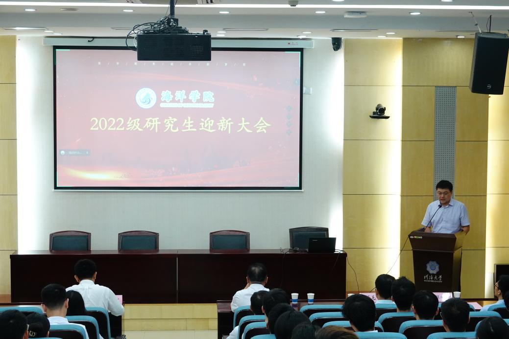 金秋送爽,齐聚海洋。9月3日晚,国产偷拍 2022级研究生迎新大会在西康路校区闻天馆113报告厅举行。国产偷拍 党委书记胡忠华、院长宋翔洲、副院长王毛毛、副院长冯涛、各所所长、副所长、研究生辅导员及2022级全体研究生新生参加此次会议,因疫情暂缓返校的新生在线上同步参与。大会由学院党委副书记吴昊主持。