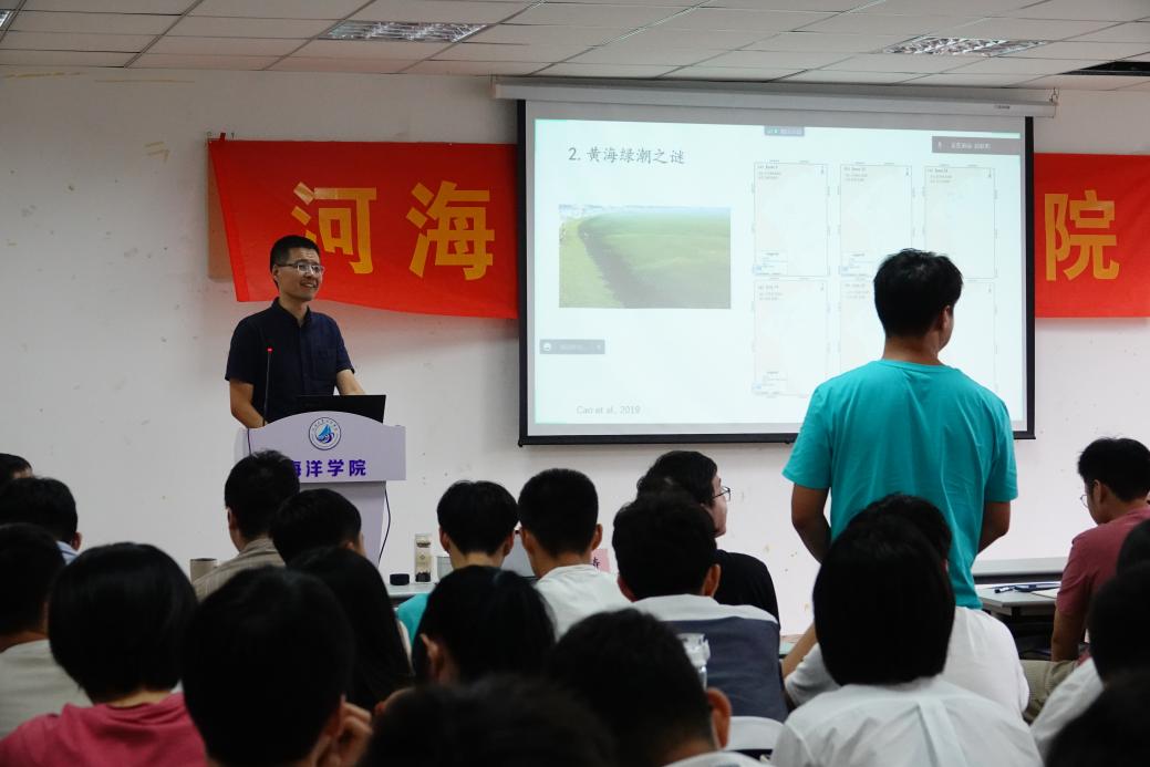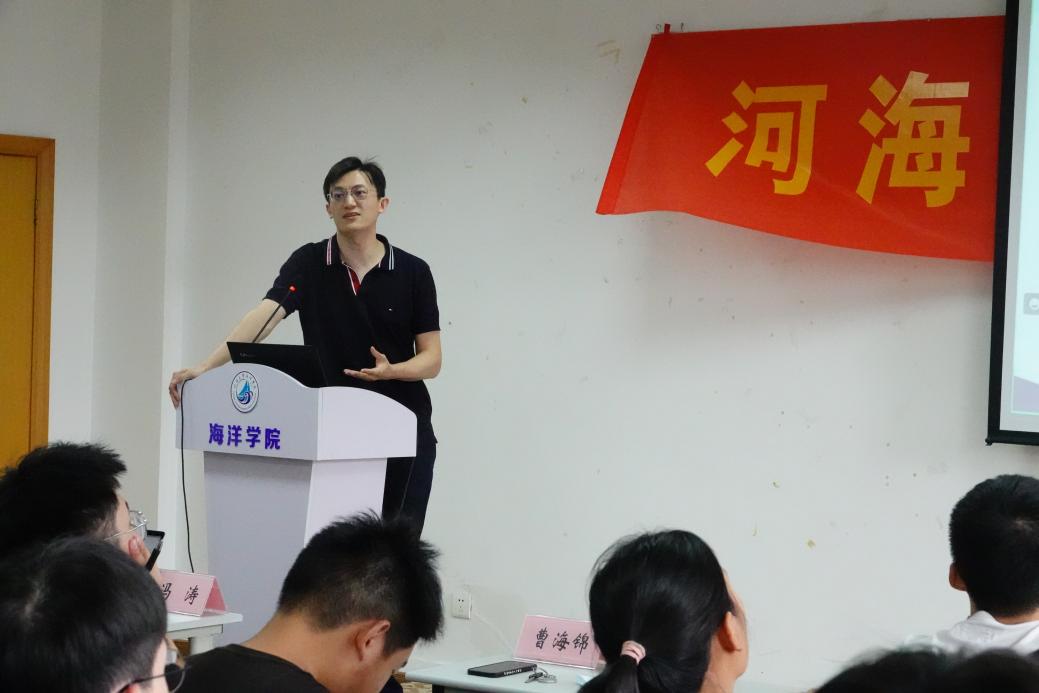 曹海锦老师以《关于海洋动力与环境交叉学科研究的思考—以海洋潮汐对微塑料的输移作用为例》为题分享报告。他向研究生们介绍了做海洋动力和环境交叉联系的契机、研究背景、遇到的科学问题与涉及到的物理过程。以潮汐对微塑料的输移为研究方向,以象山港为研究对象,介绍了海洋微塑料污染的成因,通过观测及数值模拟的手段,得出象山港微塑料分布特点、扩散特点以及受风浪、潮汐流等影响。最后,他叮嘱研究生们要努力提升自我,发表高质量论文,积极参加创新创业大赛、研究生竞赛等,积极、认真地对待自己的研究生涯。