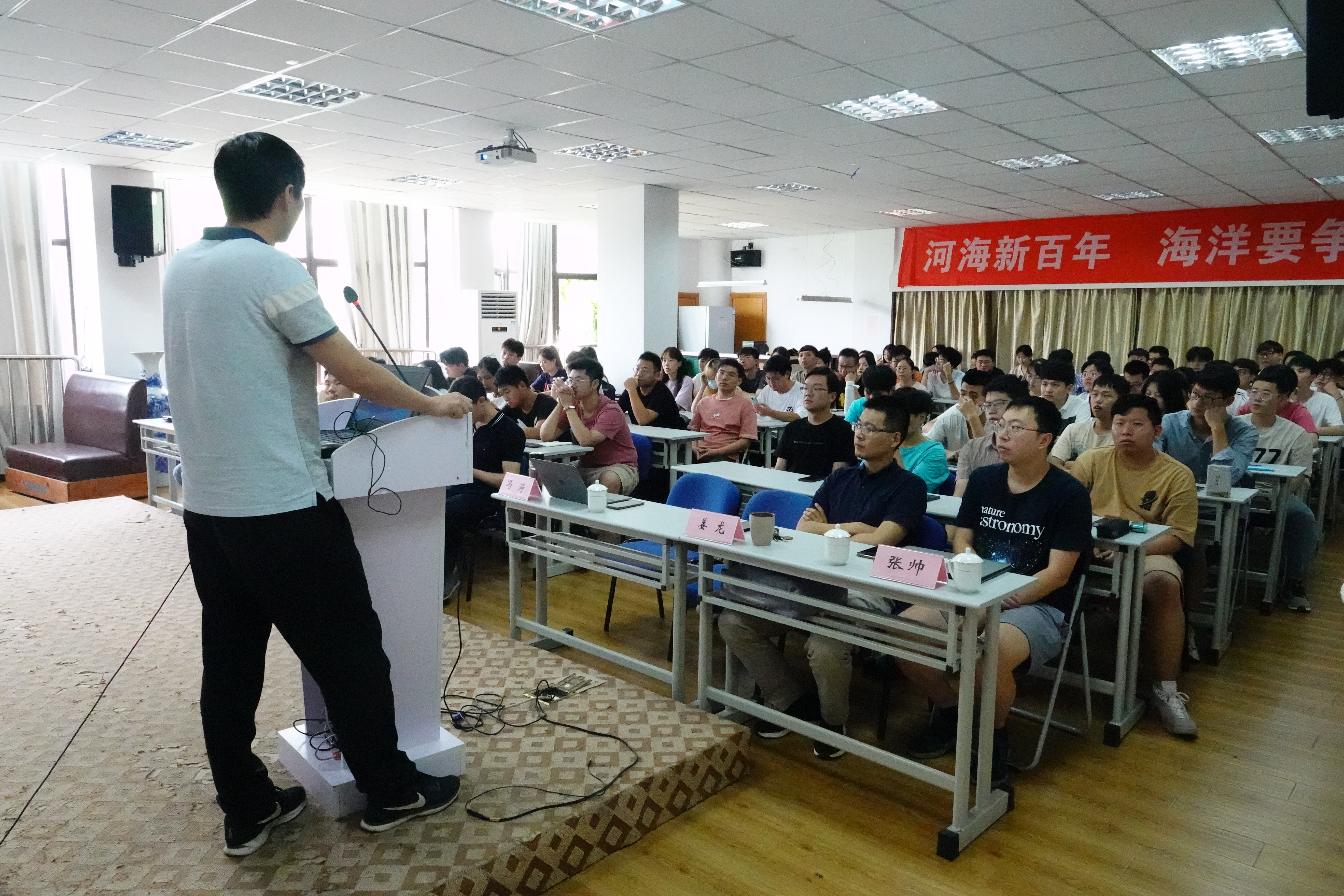 报告开始,冯涛副院长对新生的到来表示欢迎与祝贺,并介绍了三位老师交叉学科研究方向,分别为物理海洋与环境相结合、物理海洋与生物相结合、海洋地质与古气候相结合。冯院长强调了在研究生新生专业教育中开展海洋科学学科交叉的必要性,希望通过本次讲座,可以加强研究生对海洋科学研究方向的理解,有所收获。