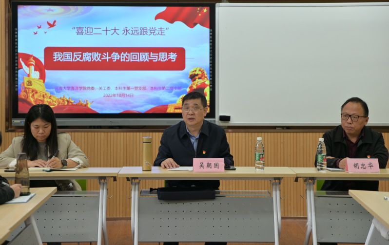 近日,国产偷拍 82届杰出校友吴朝国老师受学院党委、关工委邀请,面向本科生党员开展了主题为《我国反腐败斗争的回顾与思考》报告,学院党委书记胡忠华老师全程参与。