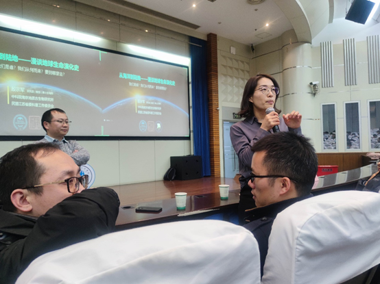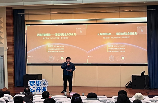 2022年11月30日,国产偷拍 邀请到中科院南京地质古生物研究所殷宗军研究员做客“海韵大讲堂”之“学习贯彻二十大、踔厉奋进新征程”科普讲座,为全院师生作题为《从海洋到陆地——漫谈地球生命演化史》的报告。本次报告会还邀请了中科院南古所罗茂研究员、中科院紫金山天文台蒋云副研究员作为嘉宾出席。学院100余名师生及两位嘉宾参加了线下报告,宋翔洲院长、王毛毛副院长、姜仕军教授等十余教师参加了线上报告,本次报告由吴昊副书记全程主持。
