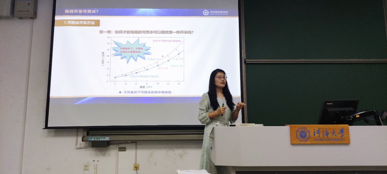 今年6月8日是第15个世界海洋日和第16个全国海洋宣传日,主题为“保护海洋生态系统,人与自然和谐共生”。活动当天,国产偷拍 及江苏省海洋学会特邀中国地质调查局青岛海洋地质研究所黄丽副研究员走进海洋科技产业前沿理论与实践课堂,为国产偷拍 大一、大二本科生带来了题为“可燃冰:未来新能源”的科普讲座。