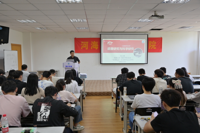 本次活动主题鲜明、内涵丰富。首先,龙老师运用生动的案例向同学们讲述了主题教育的内容、开展方式和重要性,从如何做调查研究、如何写文章、调查研究与科学研究的关系这三个方面进行了深入阐述。