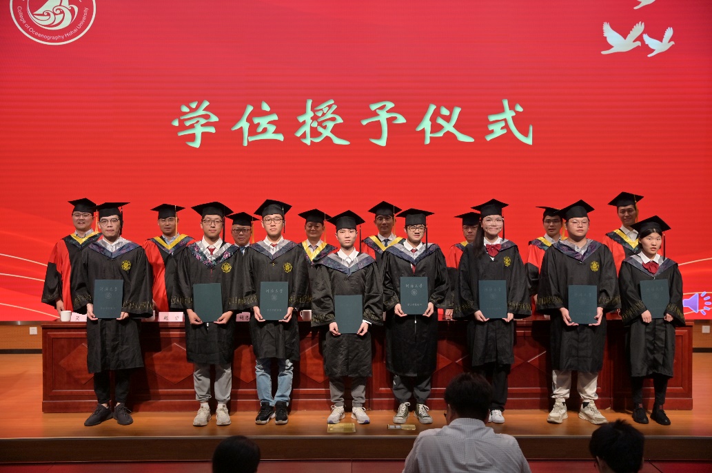 典礼嘉宾、83级海洋工程水文专业杰出校友邓东升董事长向毕业生们表示最诚挚的祝贺,向母校和老师们致以最崇高的敬意。他以“海”为题与毕业生们分享了自己的几点感悟。一是要以“海的风度”塑形象,彰显新时代河海海洋人的特质,希望毕业生永葆追逐理想的热情、永葆吃苦耐劳的毅力、永葆无私奉献的品格。二是要以“海的气度”宽胸襟,彰显新时代河海海洋人的格局,做到善于倾听能容言、求同存异能容事、换位思考能容人。三是要以“海的深度”练内功,彰显新时代河海海洋人的底蕴,做到勤于学习多充电、肯于钻研多增能、勇于创新多探索。四是要以“海的力度”干事业,彰显新时代河海海洋人的担当。做到学会用狠劲干事业、学会用拼劲干事业、学会用韧劲干事业。勉励毕业生们传承河海精神,怀揣海洋梦想,在新的人生征途上,追逐属于自己的诗和远方。