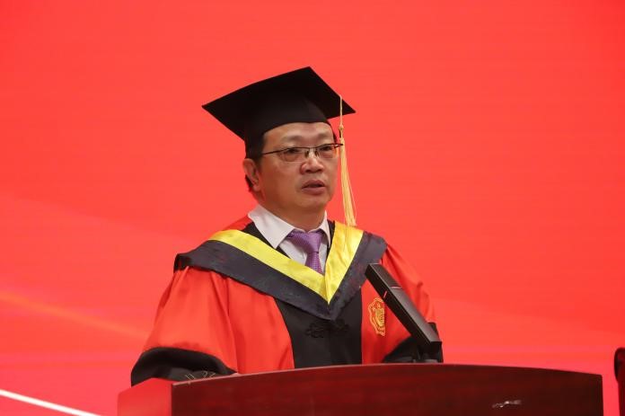 中国能源工程集团有限公司常务副总经理施建昌教授向毕业生们表示最诚挚的祝贺,向母校和老师们致以最崇高的敬意。他总结人生经验,为毕业生们分享了自己的几点感悟。一是学习能力比专业知识更重要。施教授讲述自身经历,希望毕业生用好青春财富,努力强化学习能力,尽快完成学生到职业人的角色转换。二是情商比智商更重要。要善于沟通交流、保持乐观的心态、提升应对压力和挫折的能力,要有责任感和团队协作精神,彰显新时代河海海洋人的格局。三是志存高远,视野格局决定未来。在今后更广阔的舞台中,他鼓励毕业生唯有树立远大的目标,拥有博大的胸怀和宽阔的视野、坚守住初心,才能在这机遇与挑战并存的新时代中乘风破浪,成就一番事业。