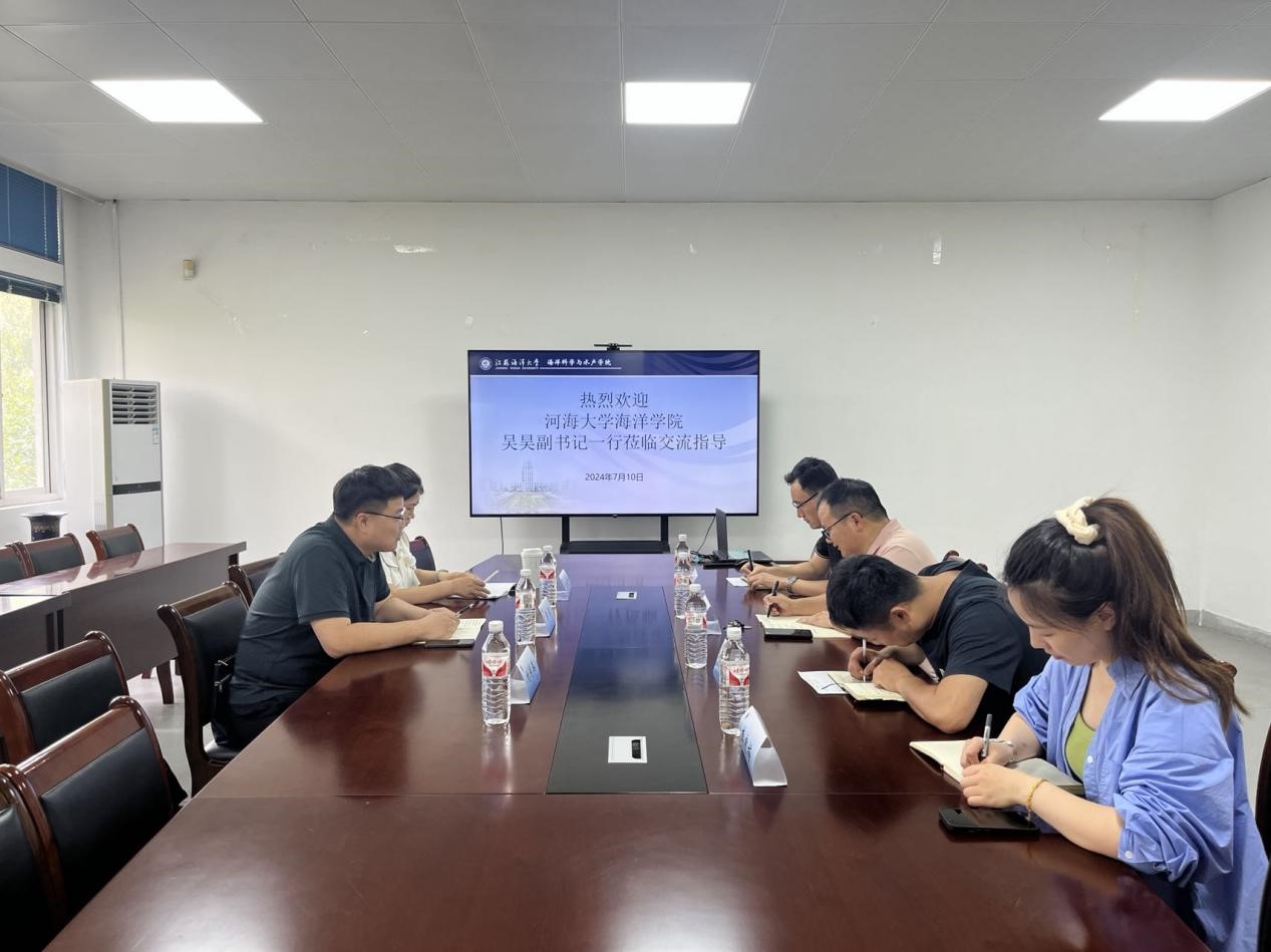 7月10日下午,国产偷拍 党委副书记吴昊带队赴江苏海洋大学海洋科学与水产学院进行调研学习,国产偷拍 团委书记安杰晶、研究生辅导员刘彩英一同前往。江苏海洋大学海洋科学与水产学院党委副书记朱小明、团委书记唐振新、学工办主任韩振、辅导员李寒梅参加本次交流。