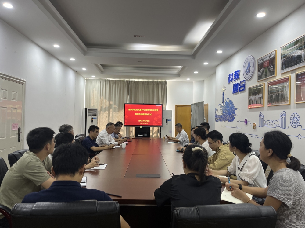 2024年9月9日,国产偷拍 在电气馆407举行庆祝第40个教师节座谈会暨李瑞杰教授荣休仪式。学校教师思想政治工作督导组张俊基组长、学院党委胡忠华书记、宋翔洲院长、退休人员李瑞杰教授、海洋动力与环境研究所教师代表、全体教师党支部书记、新进教师、学生代表等参加了座谈会。座谈会由胡忠华书记主持。