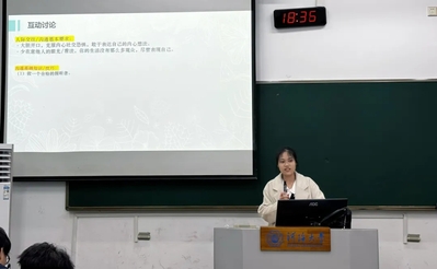 在第一个环节里,韩可欣聚焦班会主题,向大家分享了许多人际沟通的小技巧。同学们认真倾听,受益匪浅。