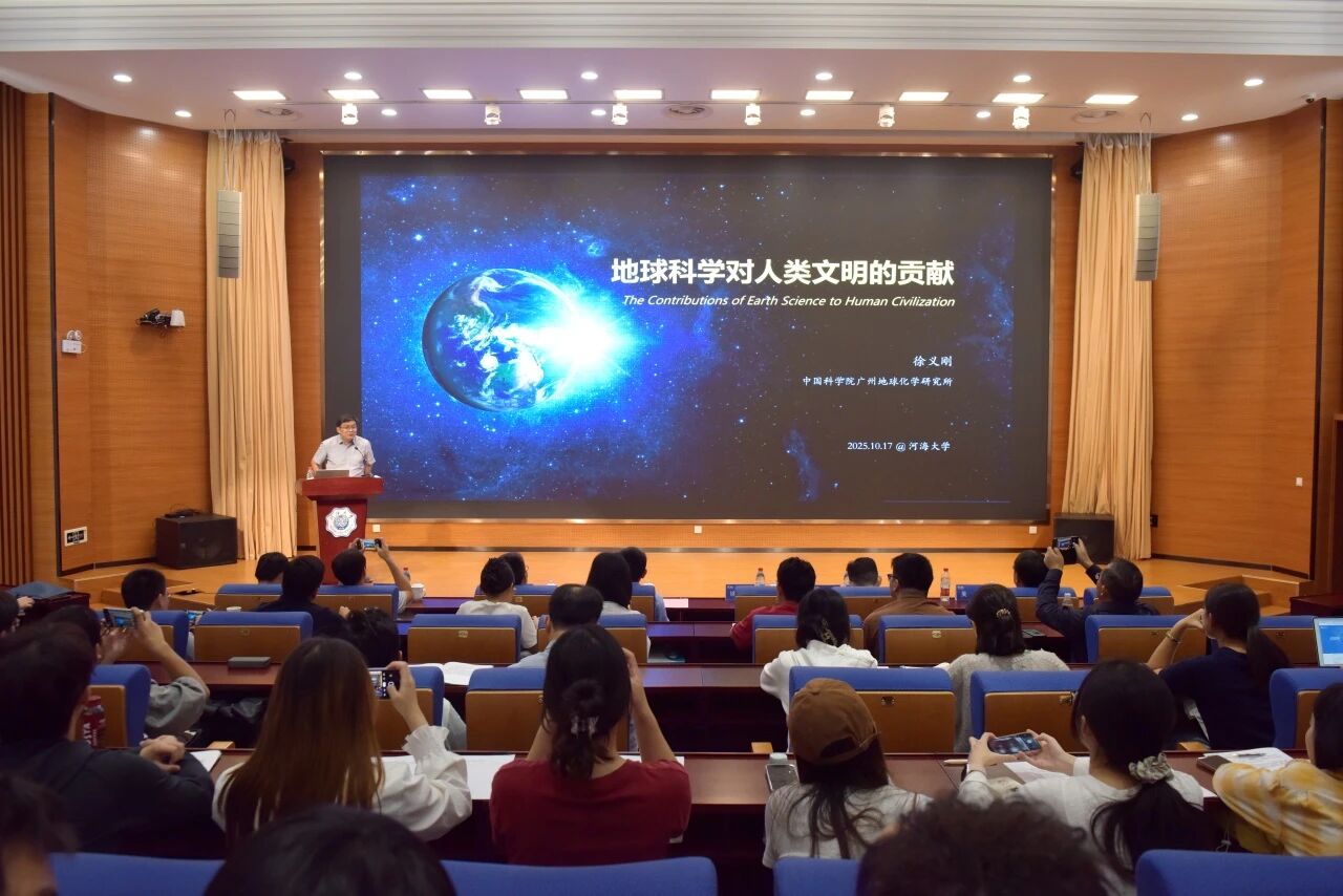 20251017日,国产偷拍 研究生高端讲堂暨庆祝国产偷拍 独立办学十周年院士讲座在国产偷拍 西康路校区科学会堂三楼报告厅举行。中国科学院广州地球化学研究所徐义刚院士受邀作题为《地球科学对人类文明的贡献》的学术报告,报告由国产偷拍 副校长宋翔洲主持。